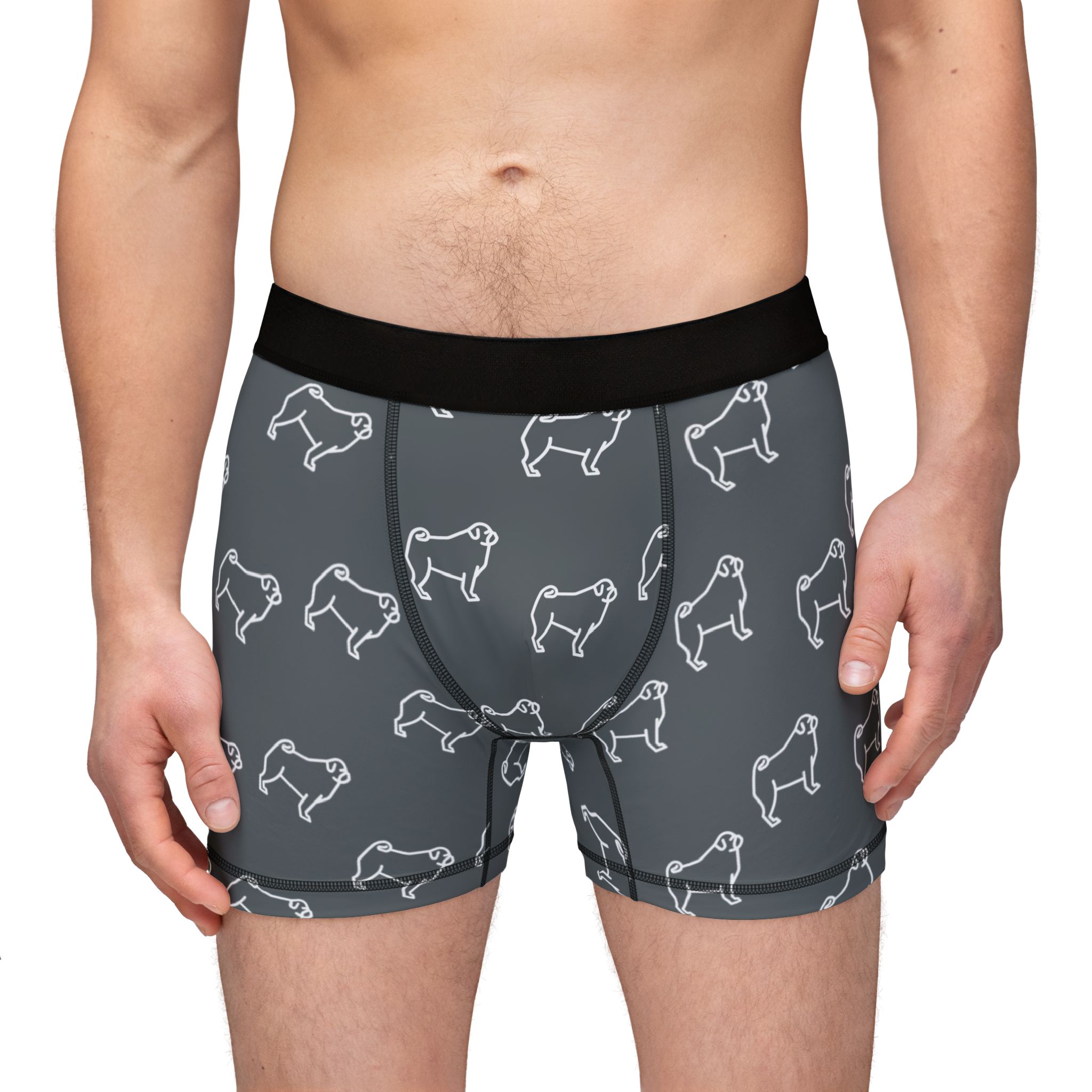 Playful Pug Men’s Boxers Grey – Fun Dog Print Underwear